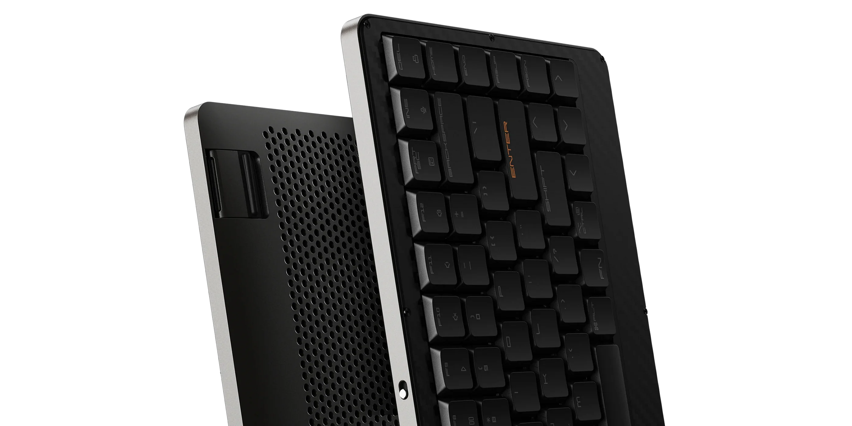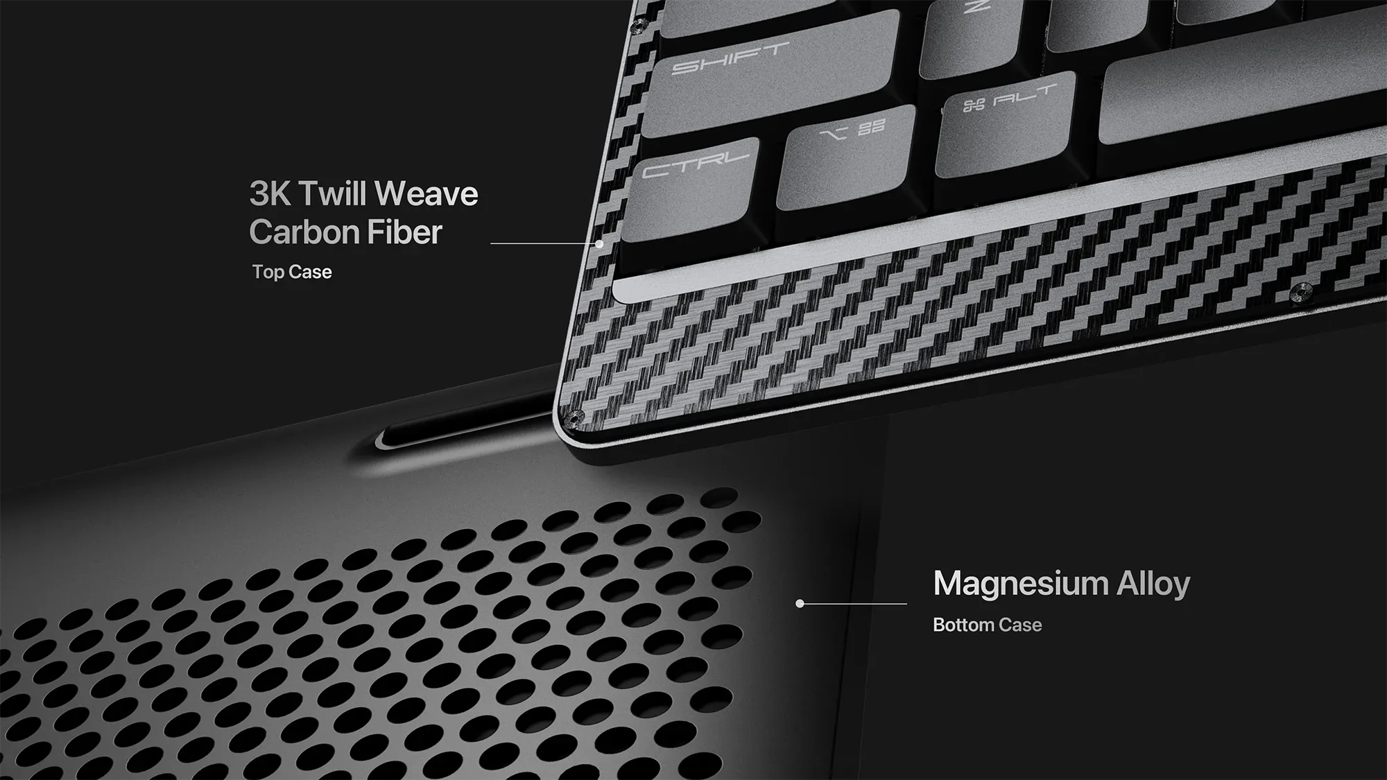 重さわずか 485gの Edge は、メカニカル キーボードとして超薄型、軽量、ポータブルなデザインに驚異的なパフォーマンスを詰め込んでいます。Edge の上部ケースは、耐久性と軽量性で知られる 3K ツイル織りカーボン ファイバーで作られており、強力な保護と美しい外観を提供します。