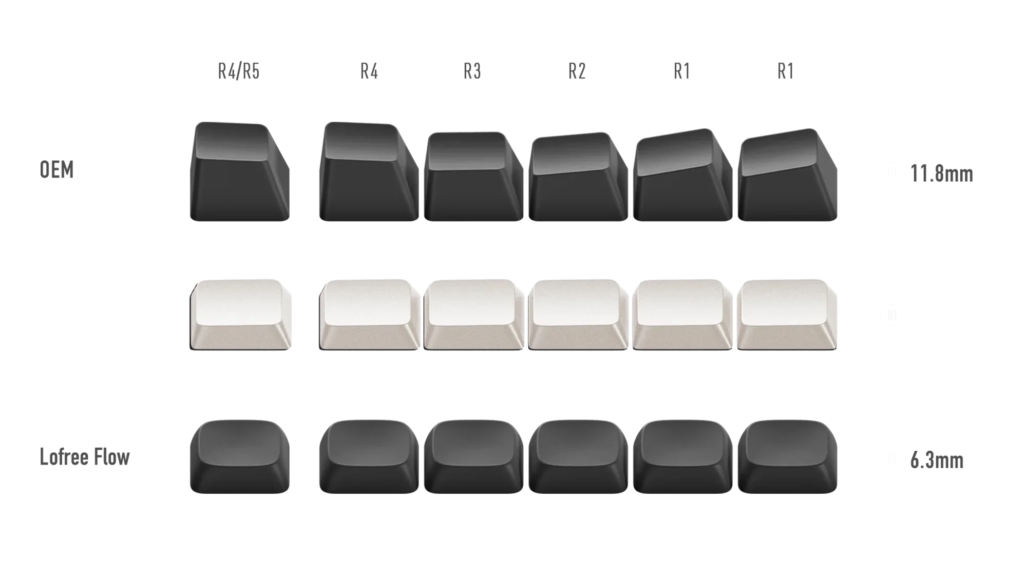 Flow スイッチをベースに、Kailh で Edge が実現できる薄さの限界を再び押し広げました。触覚の中断のないスムーズで一貫したキーストロークを実現するために、スイッチの高さを単に低くするのではなく、トータルトラベルを短くする選択をしました。2.8 mm から 1.0 mm の範囲で厳しいテストと改良を行った結果、Kailh POM スイッチ 2.0 の最終的なトータルトラベルは 2.4 mm になりました。Edge の超薄型設計により、指が自然に曲がるため、手首の疲れが軽減されます。