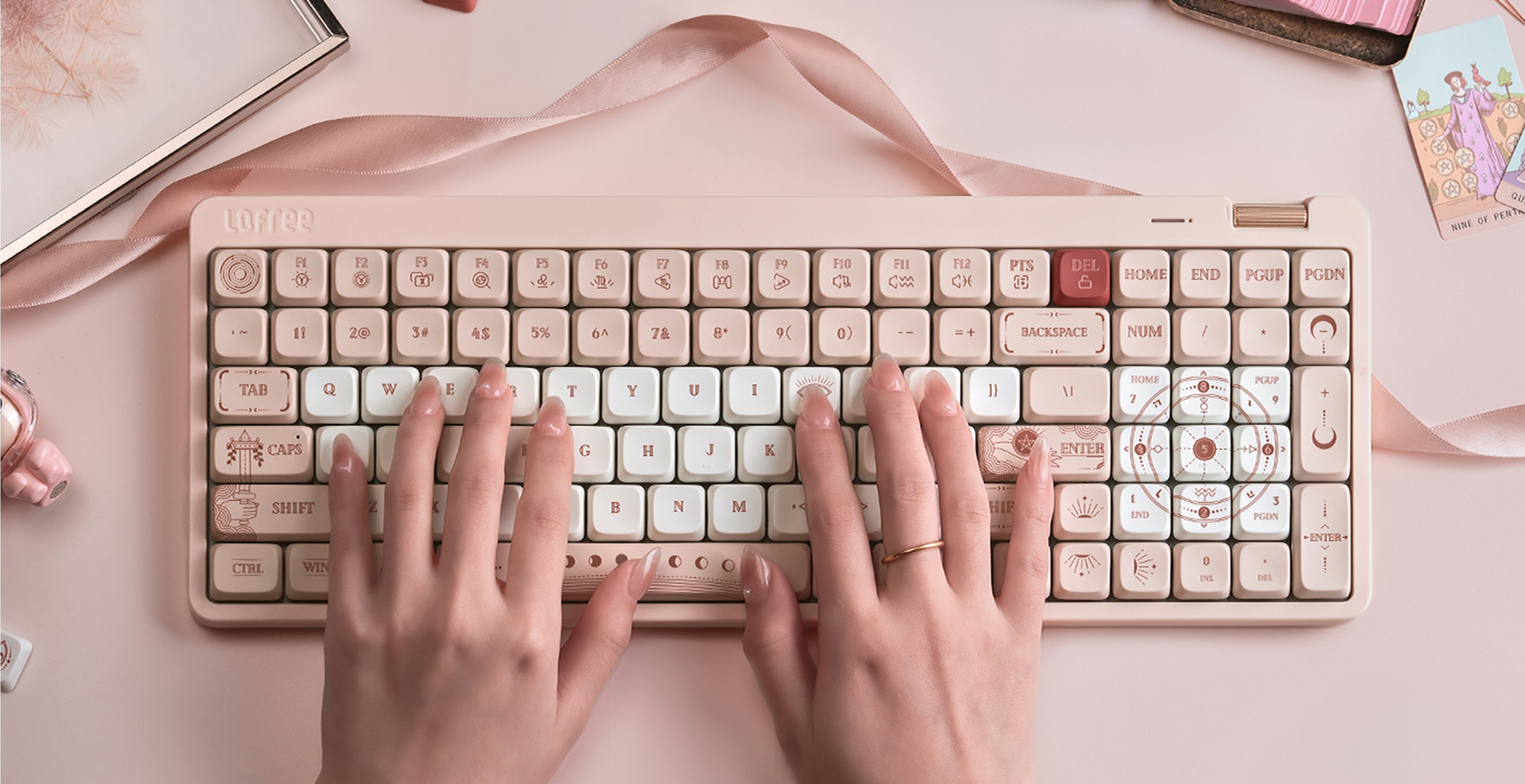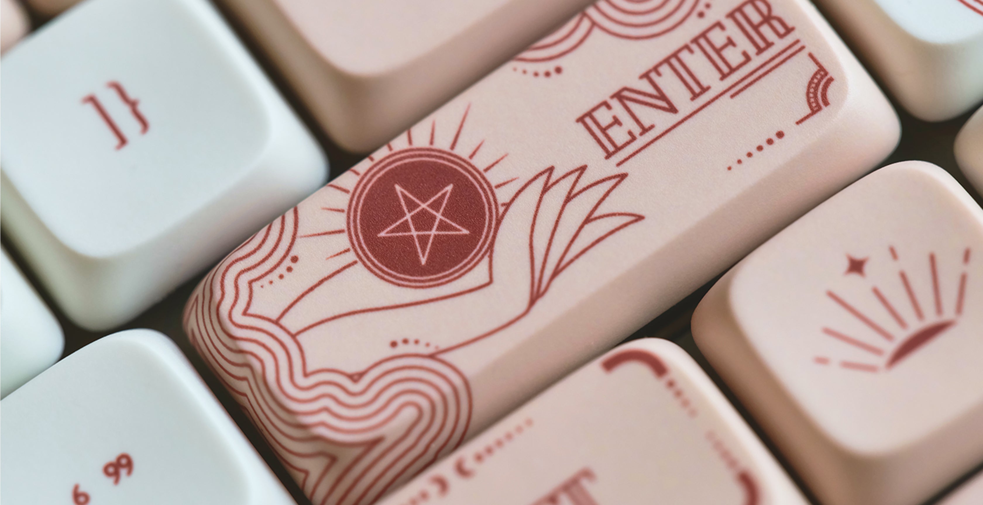 キーキャップは小さな占いのテーブルとなり、打鍵のたびに職場の謎を解き明かす隠された答えを示していきます。